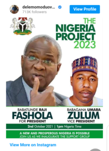 The group, pushing the agenda ‘The Nigeria Project’ is set to launch officially on the 2nd of October, 2021 to further make its decision to pick Fashola known.