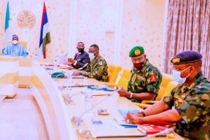 The meeting is being attended by the Chief of Defence Staff, General Lucky Irabor, Chief of Army Staff, Lieutenant General Farouk Yahaya; Chief of Naval Staff, Vice Admiral Awwal Gambo; and the Chief of Air Staff, Air Marshal Isiaka Oladayo Amao.
