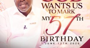On Friday June 12th 2020, Prophet TB Joshua will turn 57 years old! Here is an important message on how God wants us to mark this occasion: “Viewers all over the world, good morning and win today! Happy 57th birthday – June 12th. Birthdays are a time to reflect on ...