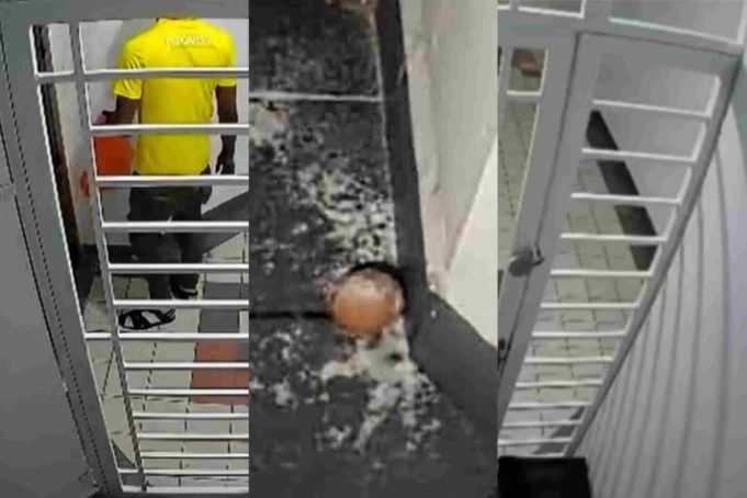 To this end, reports say he had to ask his neighbors who have CCTVs installed for help in a bid to know who placed the substance at his doorstep.