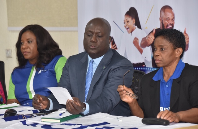 Representative of the Managing Director of Fidelity Bank PLC, Mannir Ringim flanked by Regional Bank Head for Abuja Bank 1, Vanessa Mordi (L) and Group Head Savings, Janet Nnabuko, at the 2nd Monthly/ 1st Bi-Monthly Draws of Get Alert In Millions (GAIM 4) Savings Promo Season 4, in Abuja on Thursday
