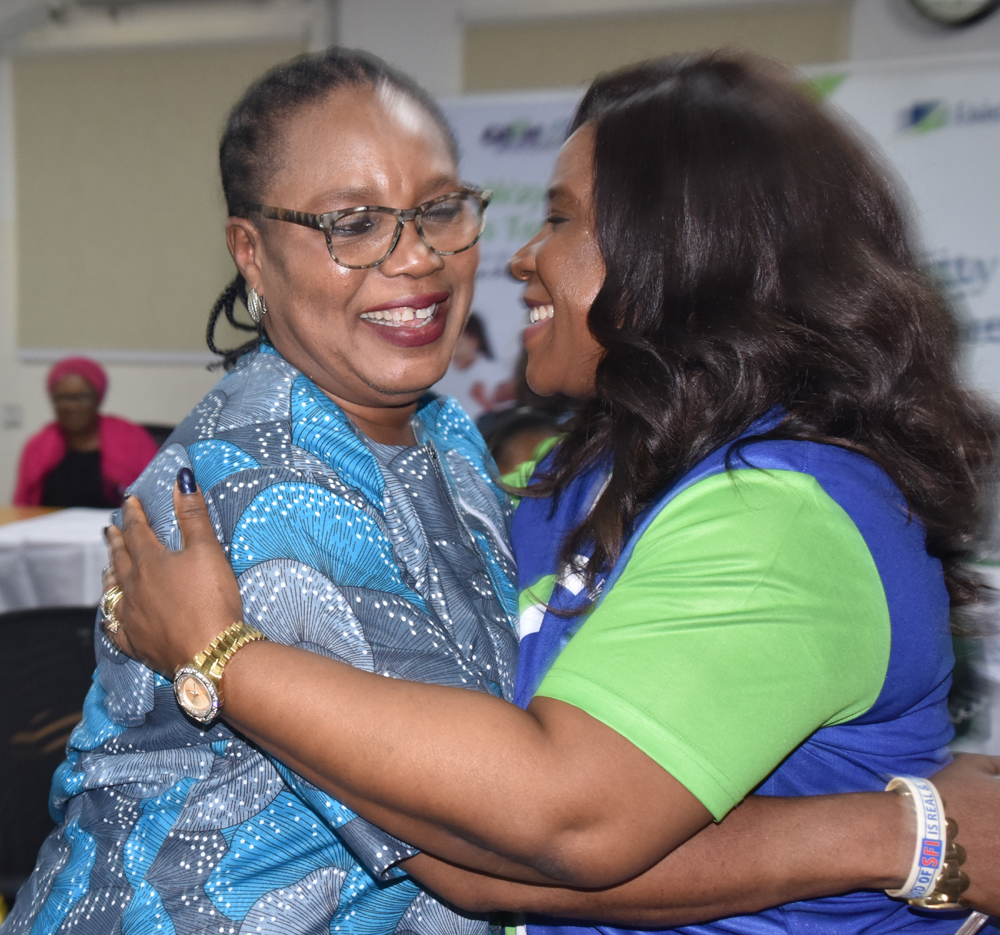 Regional Bank Head for Abuja Bank 1, Fidelity Bank PLC, Vanessa Mordi (L) congratulates Two Million Naira winner, Chika Perpetua Maduike, at the 2nd Monthly/ 1st Bi-Monthly Draw of Get Alert In Millions (GAIM 4) Savings Promo Season 4, in Abuja on Thursday