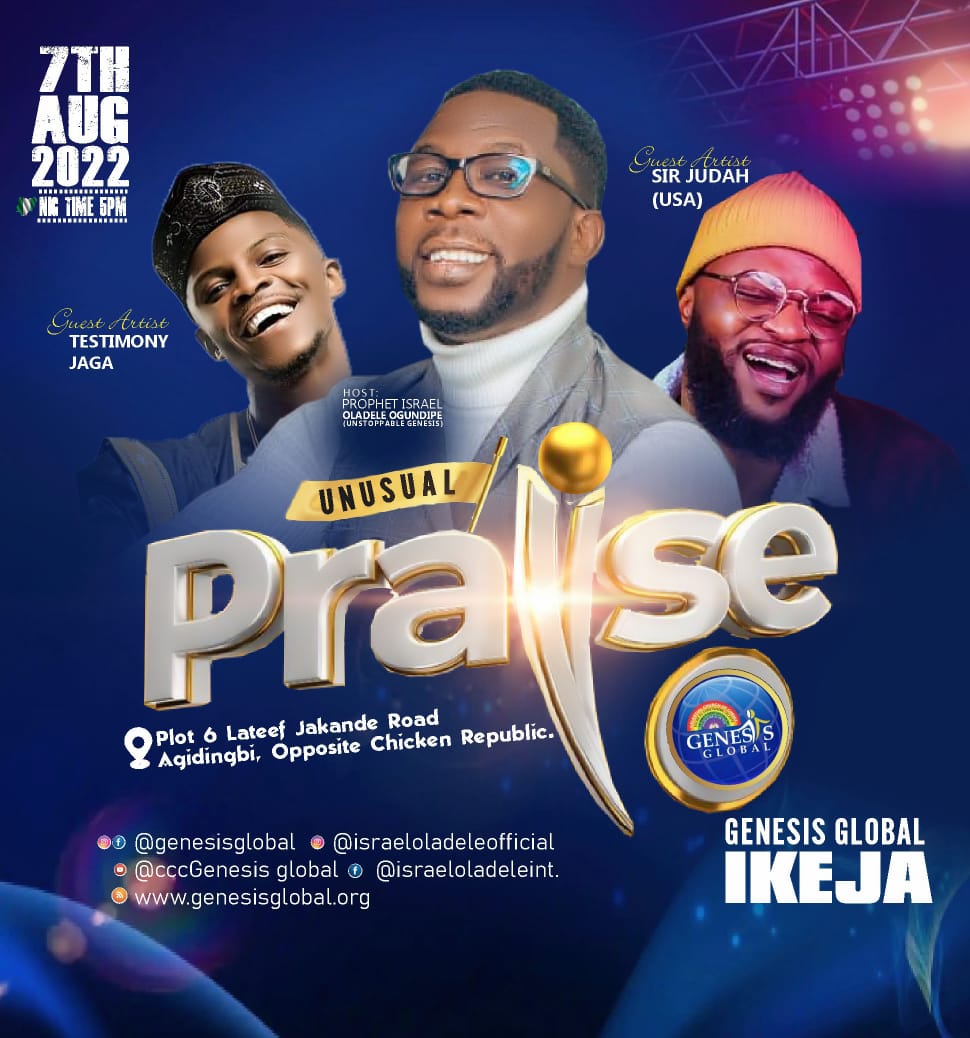 Come Sunday 7th of August 2022 has been set aside for Genesis Global to present ‘Unusual Praise’ which will hold at Ikeja Center.