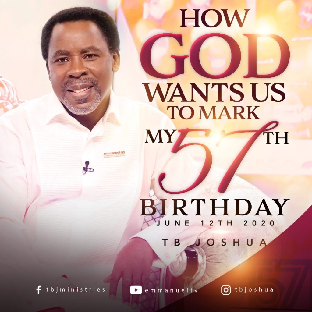 On Friday June 12th 2020, Prophet TB Joshua will turn 57 years old! Here is an important message on how God wants us to mark this occasion: