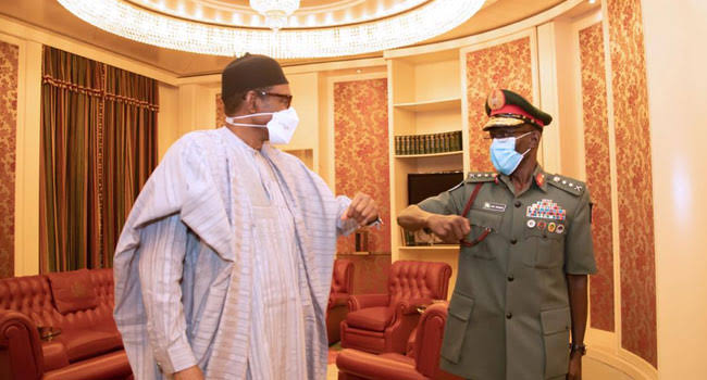 Speaking to State House correspondents after the meeting, Nigeria’s Minister of Defence, Major General Bashir Magashi (rtd), said Buhari shared his military experiences with the new COAS and reminded him of the current “pressure on security” in the country.