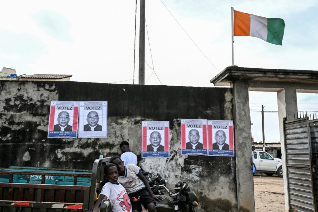 Children await the arrival of Ivorian independent presidential candidate Ahoua Don Mello for his campaign rally at the commune of Port-Bouet in Abidjan on October 15, 2025. The west African nation will go to the polls on October 25 and incumbent Ouattara, in power since 2011, is vying for a fourth term in office. (Photo by Sia KAMBOU / AFP)