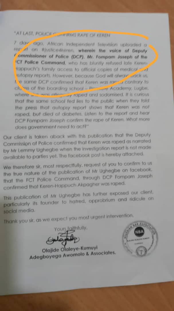Perhaps, tired of waiting for official police reports on the autopsy and investigation and seeking to prevent the issue from being swept into silence, Lemmy Ughegbe, an Abuja based journalist, human rights activist and school proprietor instantly activated his NGO, Coalition of Gender Based Violence Responders, to promote the cause of championing justice for Karen Akpagher. With Karen’s mother by his side, Lemmy Ughegbe and GBV Responders have launched a coordinated multi-pronged advocacy spanning media and political institutions, with the aim of getting the death of Karen hanged on Premiere Academy. The evidence, according to the media interventions by the group, is a report allegedly issued to the Akpagher family by Queen’s Hospital, Abuja that said decomposed condom particles were found in the late teenager’s genital, in addition to dead spermatozoa. No audio or video recording of the victim accusing the school or any staff of raping or sexually molesting her; no notation on rape or sexual molestation in the victim’s diary (from which a few media stories have lifted entries); no conclusive report from the autopsy witnessed by all parties and supervised by the police; no report from the police or any private investigator has surfaced to back the claim of rape to date.