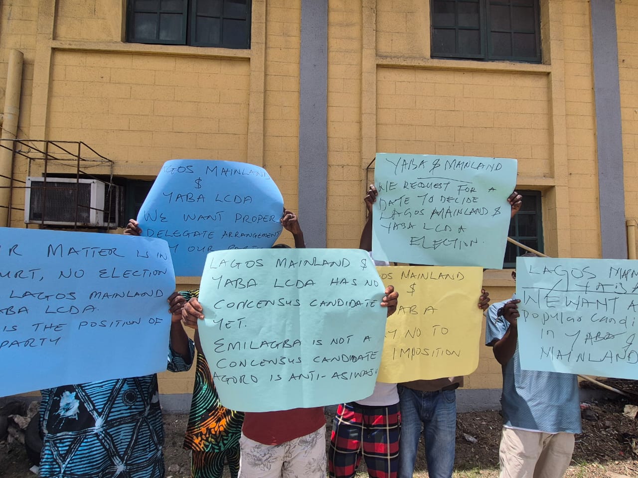 Some aggrieved members of the party had on Saturday protested against what they described as the imposition of candidates in the Lagos Mainland LGA and Yaba LCDA.