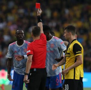 United played for almost an hour with 10 men after Aaron Wan-Bissaka’s dangerous challenge on Christopher Martins earned the defender a straight red card.