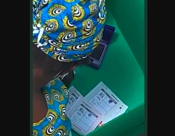 Footage of a woman massively ‘rigging’ votes at a polling unit during the Lagos LG elections today has gone viral on Social media.