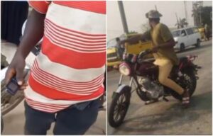 The motorcyclist was seen in a viral video explaining that the man he carried is a “big man.” It was also gathered that the incident occurred in Ifako area of Lagos state.