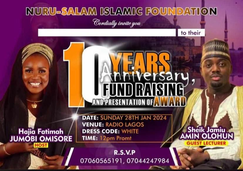 OAP Jumobi Omisore’s Nuru-Salam Foundation to Celebrate 10 Years Anniversary and Fund Raiser