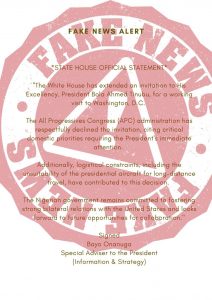 The fake release stated that “the Nigerian government remains committed to fostering strong bilateral relations with the United States and looks forward to future opportunities for collaboration.”