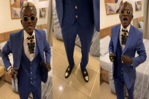 In a recent viral video, he was seen adorned in a three-piece blue suit, bow tie and matching pair of shoes to finish his new and different look.