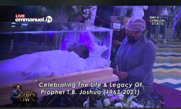 See How TB Joshua’s Widow Paid Last Respect To Her Husband’s Corpse (Pics)