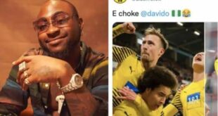 Award-winning singer, David Adeleke, professionally known as Davido, on Friday took to his Twitter account to express excitement after Bundesliga side, Borussia Dortmund used his slang, ‘E Choke on its official Twitter account. The Bundesliga club had posted pictures of their players on their Twitter account with the caption, ‘E ...