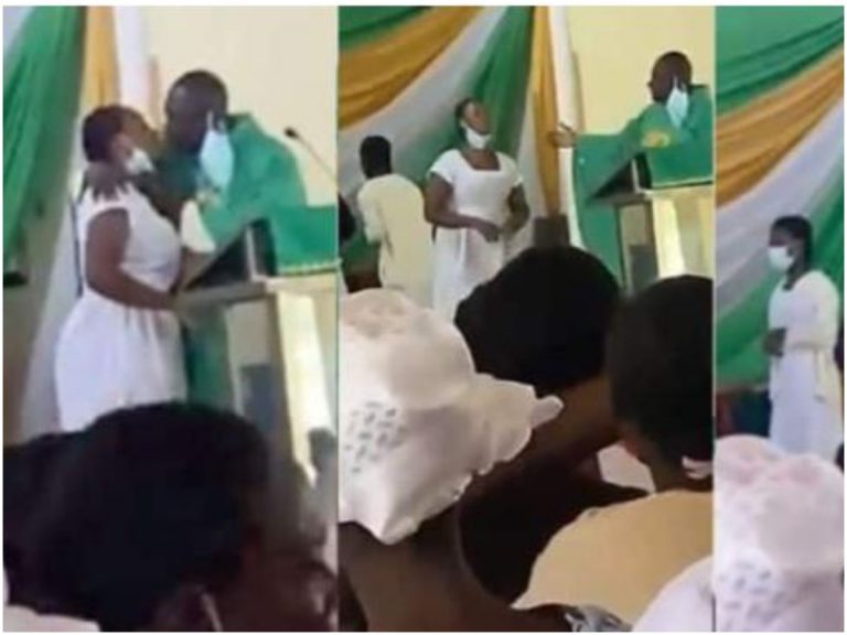 In the video that has gone viral, three students were seen lined up and taking turns to exchange kisses with the man of God behind a pulpit in the presence of a seemingly large congregation.
